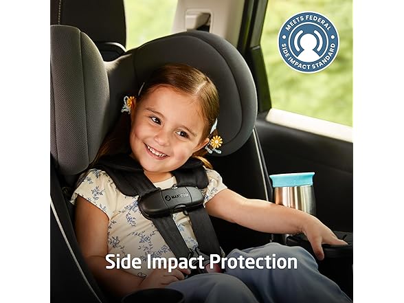The Maxi-Cosi Pria Max+ All-in-One Convertible Car Seat is thoughtfully designed with features to simplify your life as you and your child journey together in the years ahead. Pria Max+ is all about quick and easy, comfy and secure—a convertible car seat specially made for your little one with conveniences parents love. ClipQuik, the 1-handed magnetic chest clip, makes buckling your child in and taking them out of their car seat easier than ever. And when they grow overnight, our infant-to-toddler car seat has QuikFit, our 1-handed, integrated headrest and harness system, which easily raises for the proper, comfortable fit. Even installation is a breeze with the 1-click LATCH connectors. Key to the design of this grow-with-me car seat are the premium fabrics. The Pria Max+ All-in-One Car Seat is designed with EcoCare, our future-friendly, 100% recycled fabric made from plastic bottles. The yarn produced is soft, comfortable, and breathable—perfect for your little one. And our soft, plush PureCosi™ fabric is made without added fire retardant treatments, which is better for both your child and our planet. All fabrics are machine-washable and dryer-safe. Our convertible car seat also features 2 removable, dishwasher-safe cup holders—one can hold a two-handle sippy cup. There is also a snack holder with a BPA-free, spill-proof lid. Our infant-to-toddler car seat has 3 modes: rear-facing car seat (5–40 lbs., 19"–40"), forward-facing car seat (30–65 lbs., 34.4"–49"), and belt-positioning booster car seat (40–100 lbs., 43.4"–52"). This car seat is engineered and tested to meet or exceed federal safety standards, and it meets the federal Side Impact standard. Actual fit may vary. Not all children will comfortably fit in the car seat for the full weight and height ranges listed.