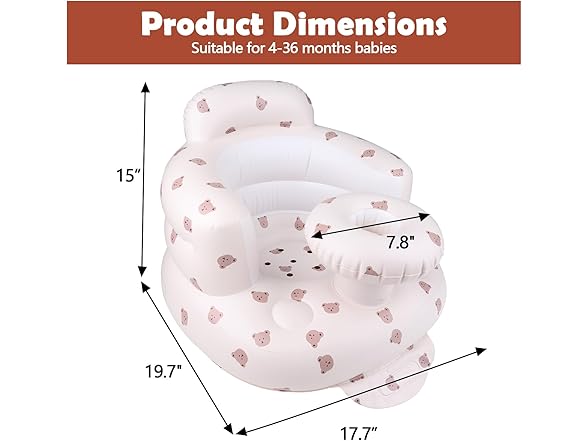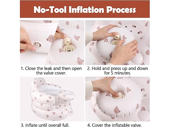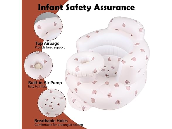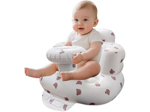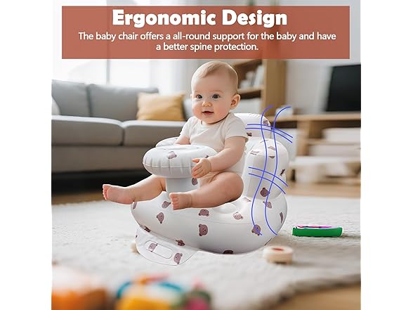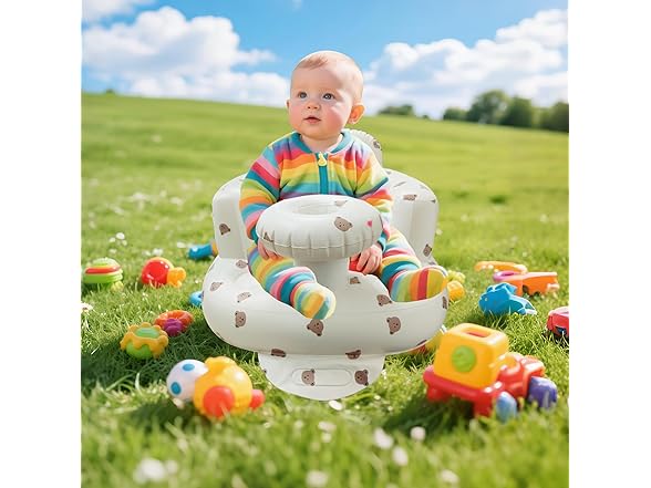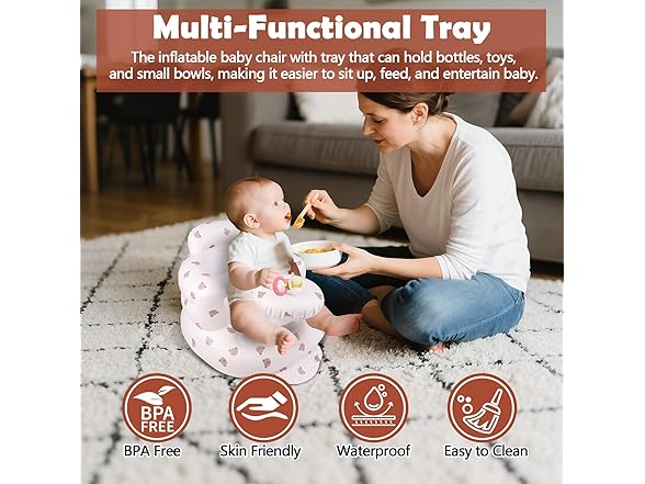 MAXTBEE Inflatable Baby Chair with Tray, Portable Baby Floor Seat for Sitting Up, Built in Air Pump Back Support Learning Sit-Up Seat for Infants for 4-36 Months - Rabbit