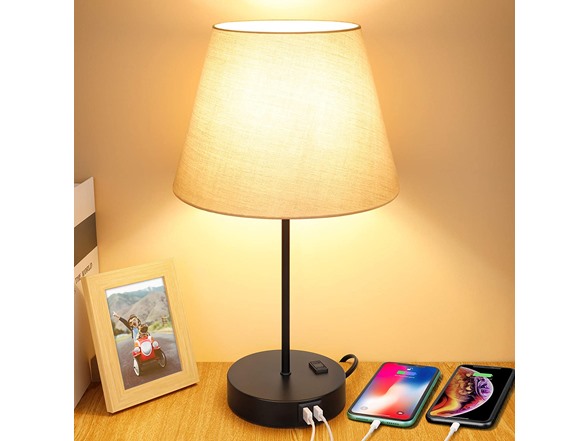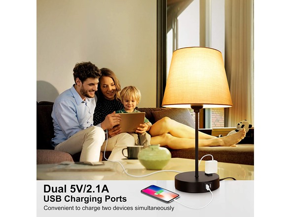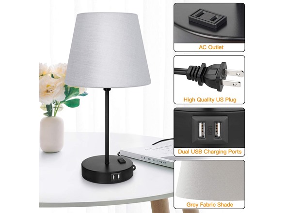- Dual USB Charging Ports & One AC Outlet - 2 upgraded built-in USB charging ports(5V/2.1A) and 1 AC outlet(2-prong) inside our small nightstand desk lamp. Convenient to charge your mobile phones, kindles, headsets, diffuser, speaker or other electronics no matter the usb touch lamp is on or off.