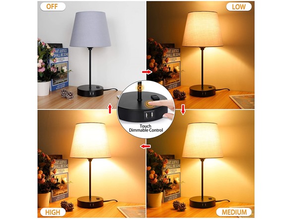 - 3 Way Smooth Dimmable Touch Control - The dimmable bedside table lamp offers 3 level brightness options(Low, Medium, High). Simply tap on anywhere of the metal base to adjust the brightness to meet your needs. Nightlight for a steady sleep or nursing. Accent lighting for warm mood. Proper high comfortable brightness for studying or working. (Lamp Height:16.54inch/420mm)