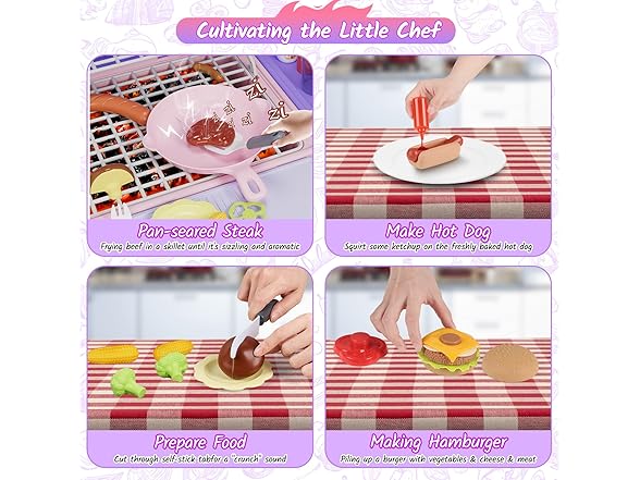 - 【Child-Safe Design & Quality Materials】We prioritize children's safety. The barbecue smoke of kids grill playset is generated by water vapor, it won't burn the children. The toy grill is made of quality ABS plastic, featuring smooth edges and emitting no unpleasant smells, ensuring both safety and durability. Our Child Grill Playset is non-toxic and non-BPA, needs 3 AA batteries (not included). It is the first gift choice for boys and girls