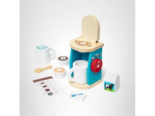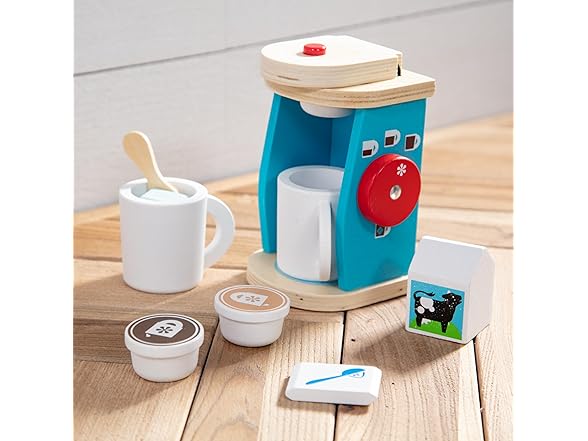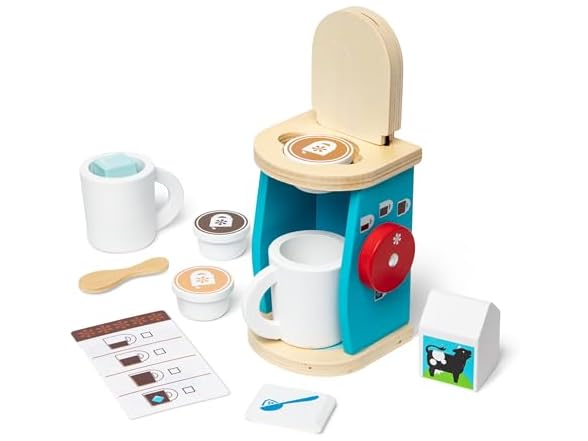 Melissa & Doug 11-Piece Brew and Serve Wooden Coffee Maker Set - Play Kitchen Accessories Pretend Play Kitchen Accessories Kids Coffee Maker Set for Girls and Boys