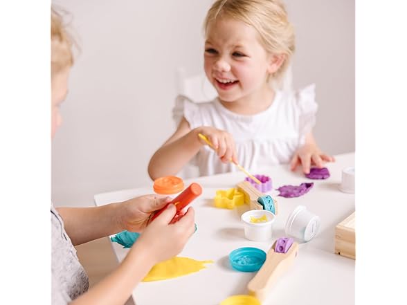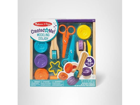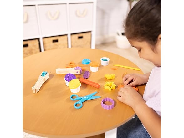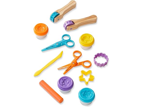 - Includes 2 pattern wheels, 2 scissors, 2 dough cutters, 4 tubs of modeling dough, sculpting tool, and more