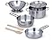 - Includes colander, pot with lid, 2 pans, 2 wooden utensils, and rack