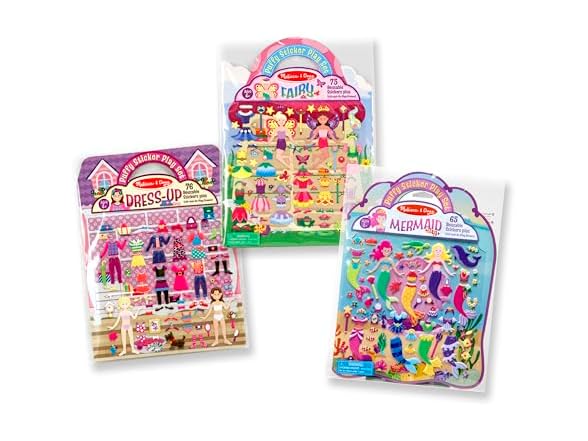 Melissa & Doug Puffy Sticker Pads Set: Fairy, Dress-Up, and Mermaid - 216 Reusable Stickers