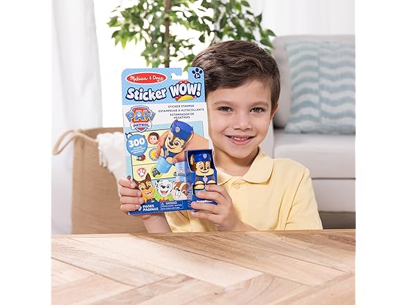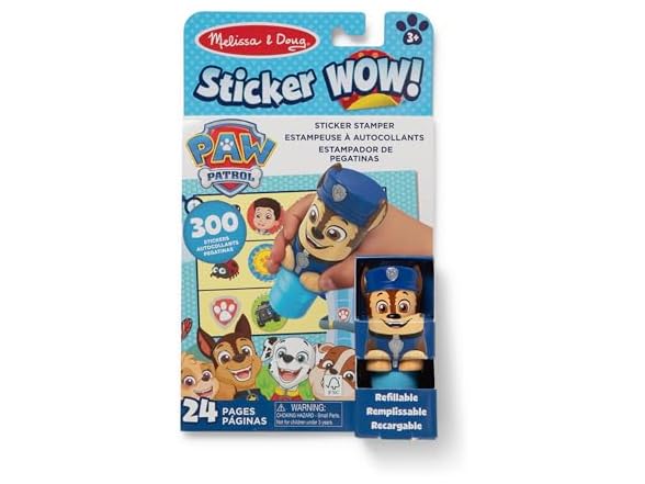 - Melissa & Doug Sticker WOW! is a whole new way to play with stickers – use the cute, collectible character to stamp PAW Patrol-themed stickers on the 24-page Chase activity pad and on other creative art projects