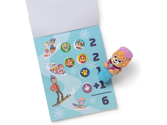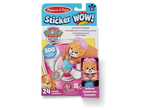 Melissa & Doug Sticker WOW!™ is a whole new way to play with stickers! Let the adorable, collectible PAW Patrol pup Skye stamp, stamp, stamp its way through 24 pages of fun-filled, PAW Patrol-themed counting, matching, and search-and-find activities. The refillable sticker stamper comes pre-loaded with a sticker stack of 300 assorted stickers – with 100 unique designs in every stack, each sticker is a surprise! Themed refill packs are sold separately and are compatible with any Sticker WOW!™ sticker stamper. Stickers are not reusable, but are easy to remove if necessary. Fill in the activity pages and use for creative art projects, such as bookmarks, posters, cards, and more. Easy-to-remove stickers and the convenient on-the-go format with built-in sticker stamper storage makes Sticker WOW!™ a great mess-free travel activity. Sticker WOW!™ (patent pending) promotes fine motor skills, encourages creative play, and it’s satisfying, fidget fun! This product is certified by the Forest Stewardship Council. FSC certification ensures that products come from responsibly managed forests that provide environmental, social, and economic benefits, and that forests are protected for future generations. Please note that FSC certification applies to new inventory only (FSC C156584)
