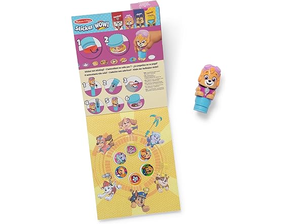 - Melissa & Doug Sticker WOW! is a whole new way to play with stickers – use the cute, collectible character to stamp PAW Patrol-themed stickers on the 24-page Skye activity pad and on other creative art projects