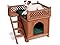 The Room with a View Pet House is an indoor/outdoor structure specially designed for smaller animals in your home. Constructed of kiln-dried wood treated with natural color stains to enhance its appearance and durability, the lower lounge area has a raised bottom to keep pets dry and features steps along the side of the house that lead to a rooftop balcony where your pet can sun-bathe and play.The construction is lightweight, easy to handle and has a calming, natural scent. The pet house includes simple instructions, with easily assembled, knock-down panels and a removable roof top for easy cleaning. This comfortable house with its beautiful lattice fence and stained brown cedar color will sit nicely on the deck or balcony of your home. The steps along the side of the house lead to a roof-top balcony where your pet can sun-bathe and play.