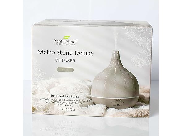 - DELUXE ULTRASONIC DIFFUSER: The perfect way to use your essential oils, the Metro Stone Diffuser Deluxe makes a stylish addition to any decor. The solid cement cover of this diffuser brings contemporary sophistication to your living room, bedroom, or home office.