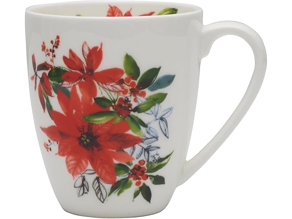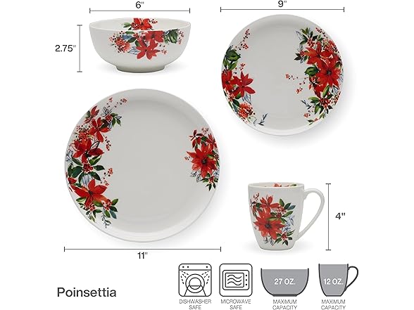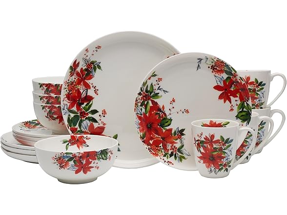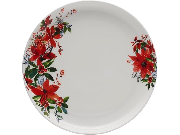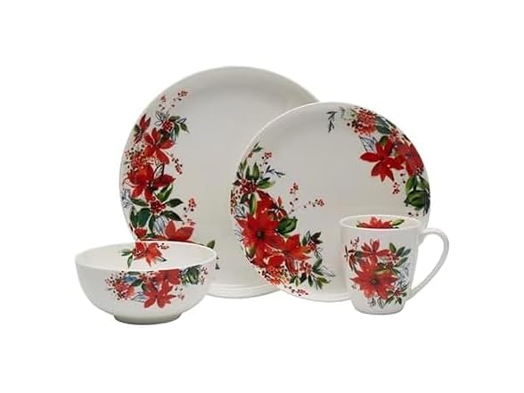 Mikasa Winter Poinsettia Holiday Bone China Lightweight Chip Resistant Dinnerware Set, Service for 4