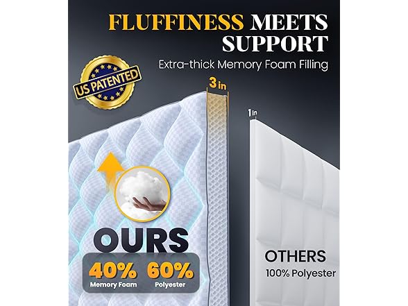 Milcabe 3 Inch Memory Foam Mattress Topper, Queen Size