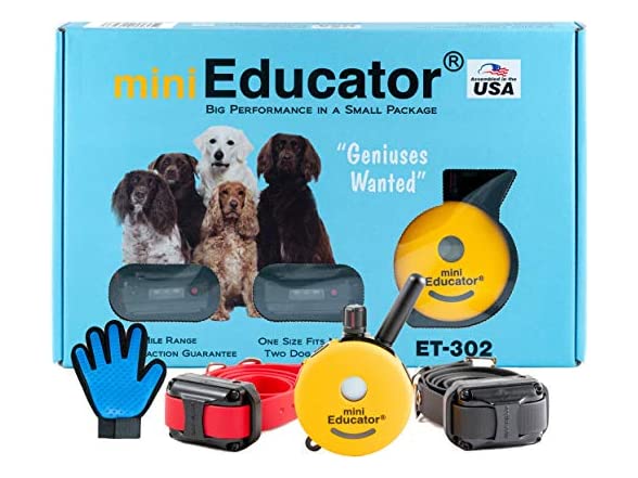 Mini Educator Dog Training e Collar - ET-302 Educator Remote Trainer System - Waterproof - Vibration Tapping Sensation with Bundle Soft Pet Grooming Glove