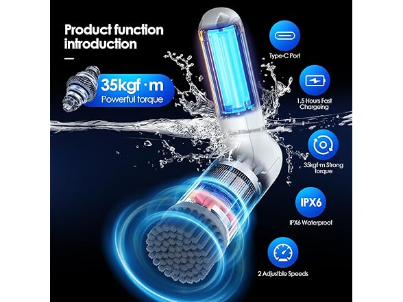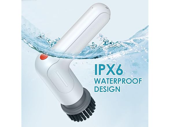 - 【Waterproof & Saft Cleaning】Waterproof rating of IPX6 and high-sealing design can be washed directly under the faucet. With its lightweight and portable design, the cordless power scrubber comes with a hook and storage bag for easy storage, reeing up your time and energy