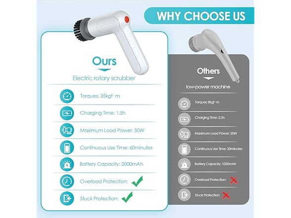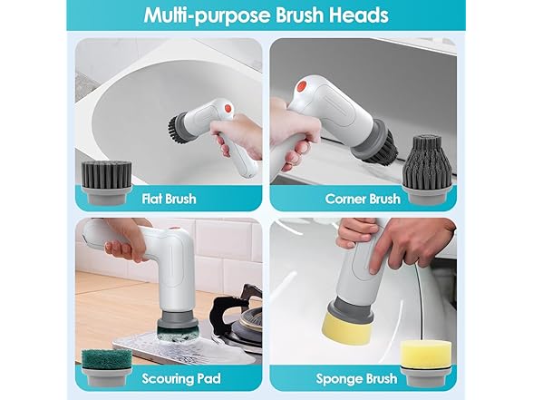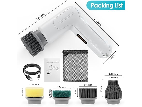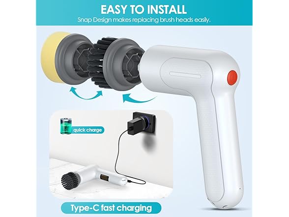 electric handheld spin scrubber focuses on every smudgy area that are tend to be ignored. Ergonomic Curved Use Design enables you clean more easily and effortless. You do not have to find proper angle to tackle the dirty area. Very easy to handle the electric spin scrubber. Smudginess Has Nowhere to Hide In daily cleaning, you might have paid little attention on covert areas and they are exactly the most irritating part of house cleaning. The electric power spin scrubber owns incredible blast torque to clean the grime. Even the narrow space and gap between the tiles can be effectively cleaned up. Anti-slippery Handle Design When doing cleaning chores, it is inevitable to use detergent for better effect. However, you might feel that some tools are arduous to grip because they would slip. In case of that problem, this spin scrubber with anti-slip design where you handle. So it prevents spin scrubber from sliding off.