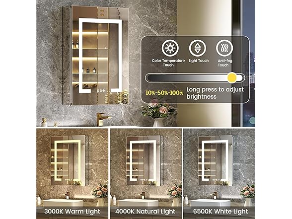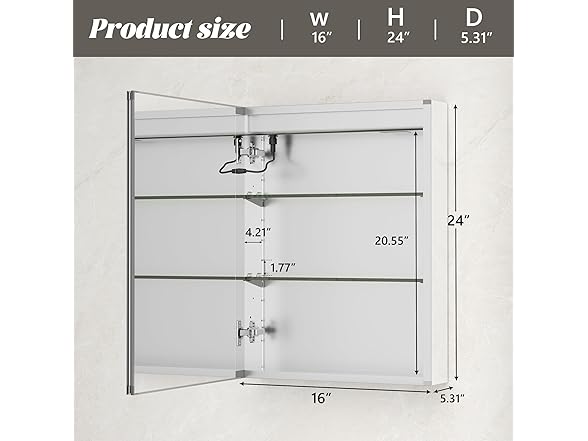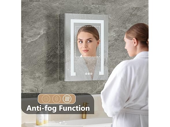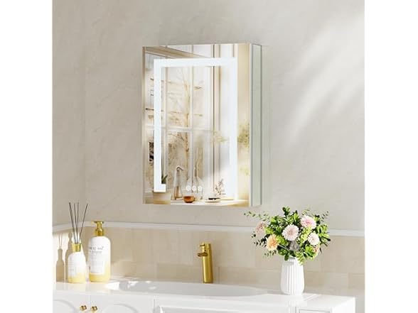 MODCART 16"x24" LED Lighted Bathroom Medicine Cabinet with Mirror, Recessed or Surface Mounted Medicine Cabinet with LED Lights, Adjustable Glass Shelves, Defogger, Easy to Install, Aluminum Frame