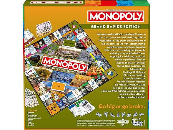 - Perfect Gift for Any Occasion – Grand Rapids, MI: Need a unique gift for any occasion? Grand Rapids, MI Monopoly is a perfect option, bringing fun to kids aged 8 and up and adults, making it an exciting choice for family nights, parties, and special events!