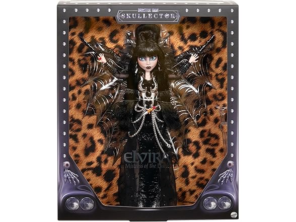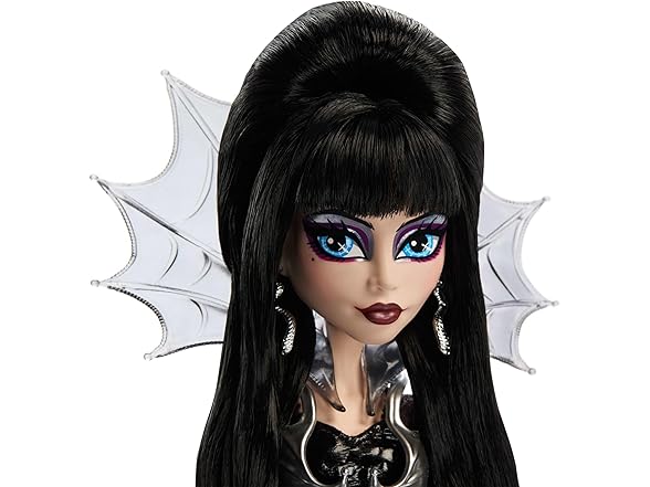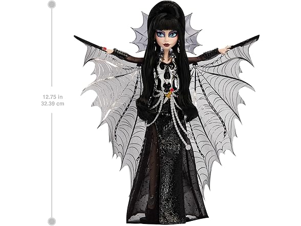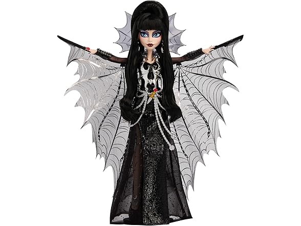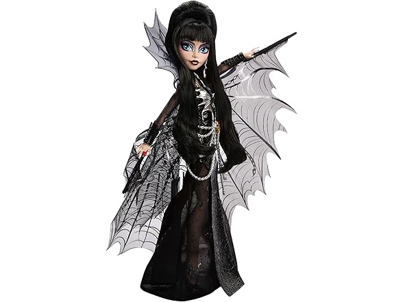 Monster High Doll, Elvira, Mistress of The Dark Collectible in Black Faux Leather Dress with Silvery Batwing Cape and Premium Accessories