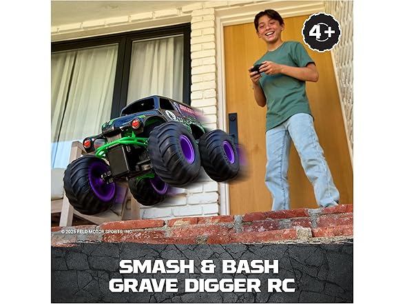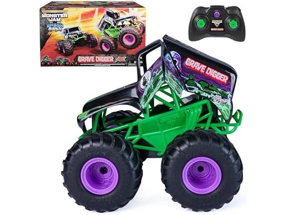 - Smash & Bash Grave Digger RC: This 1:15 scale remote control monster truck features authentic Grave Digger styling, soft rubber tires, & rugged body detailing, for high-impact play