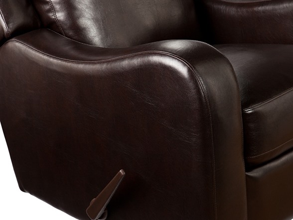 This chocolate reclining chair features gorgeous bonded leather which offers the look and feel of luxury without the price tag. The scooped arms provide both design and comfort while the sides feature lovely stitching details.
