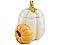 The Two Pumpkins Canister is a beautifully crafted piece made from hand-painted stoneware. This figural canister not only serves a practical purpose but also brings a touch of charm to any space. Its sturdy construction ensures durability, allowing it to be used for storing a variety of items. Measuring at 5 1/4" x 4", it is the perfect size for holding small trinkets, candies, or even kitchen essentials like spices or tea bags. The intricate detailing on the pumpkins adds a unique and eye-catching appeal, making it an excellent addition to your home decor. Whether placed on a shelf, countertop, or incorporated into a seasonal centerpiece, this Two Pumpkins Canister is guaranteed to make a lasting impression.