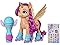 Get to know Sunny Starscout: an adventurous pony from Maretime Bay! Sing 'N Skate Sunny Starscout is an interactive pony figure that kids can control. Comes with a cordless microphone that can be used for singing or as a remote control. Use the buttons on the microphone to move the figure forward or spin her around. Kids can also shake the RC microphone to make the figure move! Figure moves her heads and wings while she skates and hums part of the song "Gonna Be My Day." Features over 50 combinations of lights, sounds, and movement. 9-inch orange pony figure has long, soft pink hair and a character-inspired shooting star Cutie Mark on one side. Fans new and old can imagine adventures with My Little Pony: A New Generation movie-inspired toys. Makes a great holiday or birthday gift for kids ages 5 years old and up! My Little Pony and all related characters are trademarks of Hasbro.