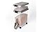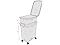 - The larger, 25 lb. container sits atop four wheels for easy mobility