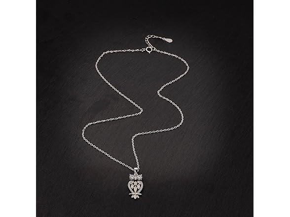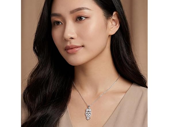 Discover the enchanting beauty of wisdom with the Namomi Jewelry Owl Pendant Necklace - a stunning piece that combines elegance, symbolism, and exceptional craftsmanship. WHY CHOOSE OUR OWL NECKLACE? Premium Quality Materials Crafted from authentic 925 sterling silver and finished with hypoallergenic rhodium plating, this necklace offers superior shine, tarnish resistance, and is gentle on sensitive skin. The rhodium coating ensures long-lasting brilliance while protecting your skin from irritation. Exquisite Design Details Each feather is meticulously detailed to capture the owl's majestic essence. Sparkling cubic zirconia stones adorn the pendant, creating beautiful light reflections that catch everyone's eye. The owl's wise expression and intricate craftsmanship make this more than just jewelry - it's wearable art. Perfect Fit & Comfort The 18-inch chain length is ideal for most necklines, sitting beautifully at the collarbone. The included 1.3-inch extender provides flexibility, ensuring the perfect fit for any occasion or outfit. Meaningful Symbolism The owl represents wisdom, intuition, and protection across cultures. Wear this necklace as a reminder of your inner strength and intelligence, or gift it to someone special to convey your admiration for their wisdom. Ready to Gift Arrives in an elegant gift pouch, making it perfect for birthdays, graduations, Mother's Day, anniversaries, Christmas, or "just because" moments. No additional wrapping needed! CARE INSTRUCTIONS: Store in the provided pouch when not wearing Remove before swimming, showering, or exercising Clean gently with a soft polishing cloth Avoid contact with perfumes, lotions, and harsh chemicals