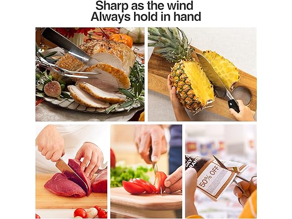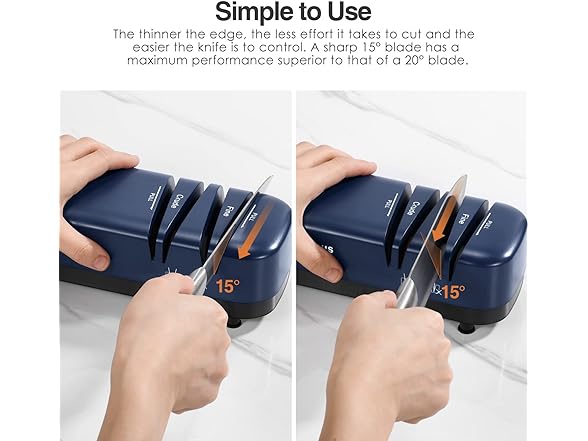 - The Correct Sharpen Steps - Obliquely insert the dull knife and closely touch the outside wall as the introduced pictures showed, and then pull it from outside to inside to sharpen. You will enjoy sharpness like new after 60 seconds.
