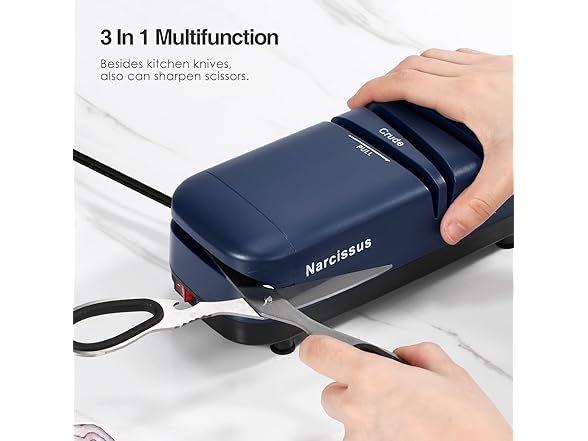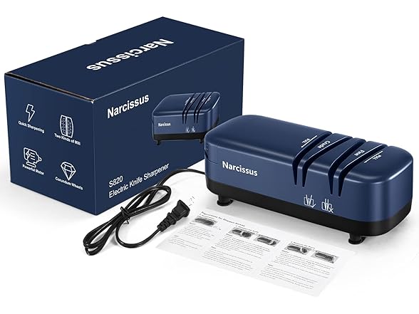 - As Sharp As New - Narcissus S820 Electric Knife Sharpener is designed for home & kitchen use, bringing you professional results conveniently at home. Works on stainless steel kitchen knives but not ceramic or serrated.