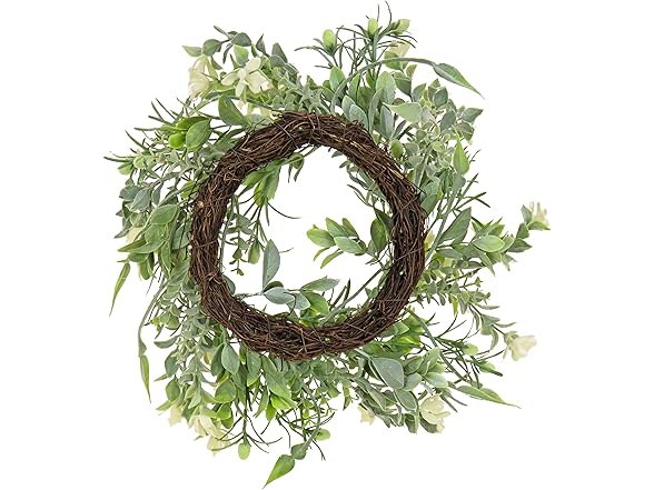 National Tree Company Artificial Wreath Decoration, Green, Woven Branch Base, Decorated with Mixed Flower Blooms, Flowing Green Stems, Spring Collection, 14 Inches