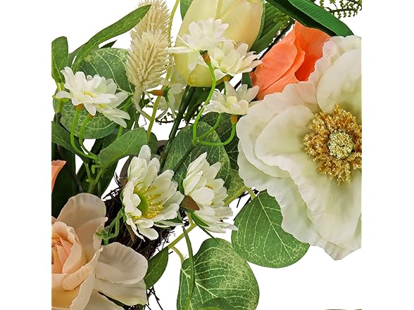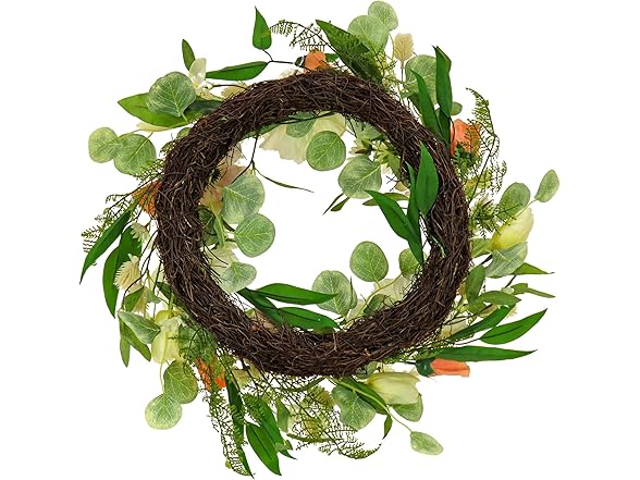 - QUALITY MATERIALS: Crafted from high-quality materials, this wreath features a sturdy woven branch ring base, designed to maintain its beauty and integrity for years to come. The durable construction ensures it can withstand seasonal use, providing long-lasting, vibrant décor that retains its charm even after multiple springs and summers. Whether displayed indoors or in covered outdoor areas, this wreath is built to stand the test of time with minimal maintenance.