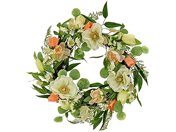 - LIFELIKE ARTIFICIAL FLORAL WREATH: This summer wreath features realistic tulip blooms, poppies, and buttercup blossoms. This floral home décor beautifully represents the colors and textures of spring, creating a cheerful and welcoming atmosphere for any room or front door.