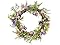 - This artificial hanging wreath is decorated with an assortment of pink and blue flower blooms, colorful pastel eggs and features a swirl of long, leafy greens to create an additional natural appeal