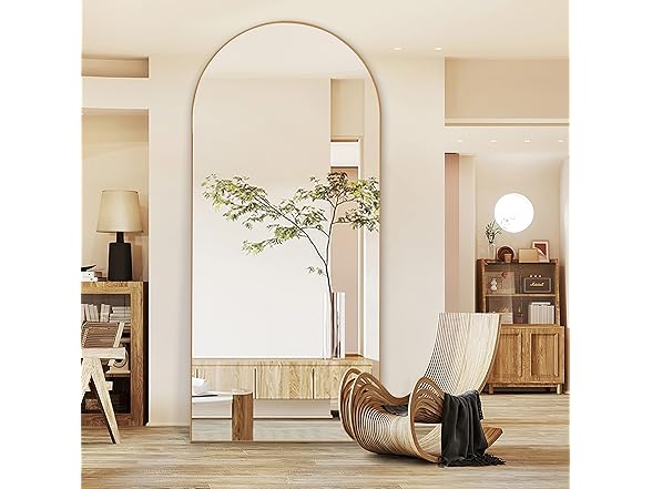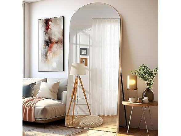NeuType Arched Full Length Mirror, 71"x32"Full Body Mirror, Wooden Thin Frame, Hanging or Leaning Against Wall, Oversized Large Bedroom Mirror, Floor Mirror, Dressing Mirror, Gold