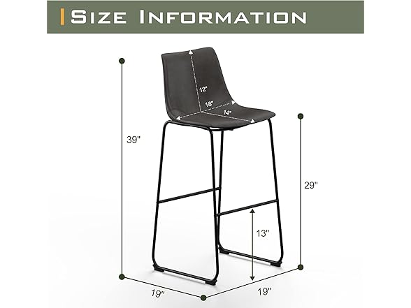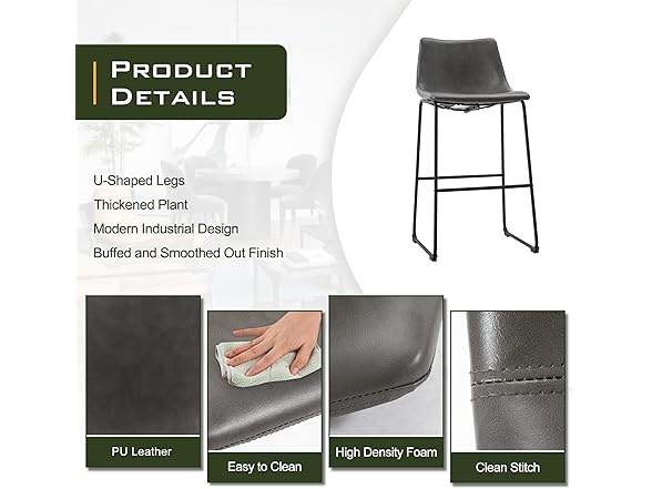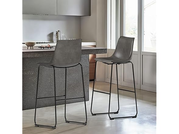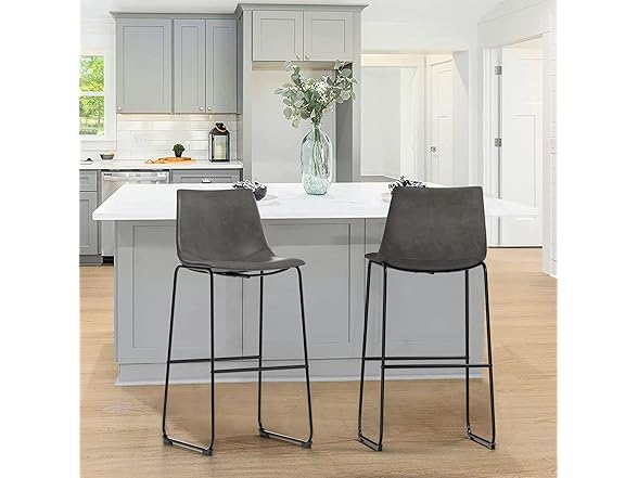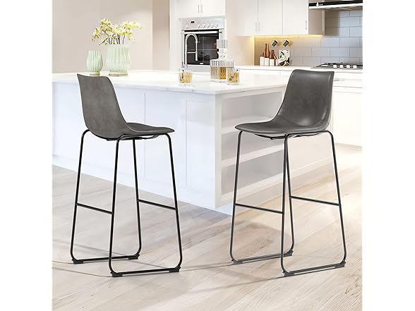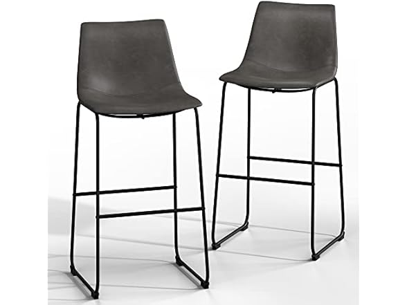 NicBex Retro Bar Stools Crazy-Horse Leather with Metal Legs Barstools, Lounge Kitchen Island Bar Stools, Set of 2, (Grey Color) (A-GE17023-USSU014)