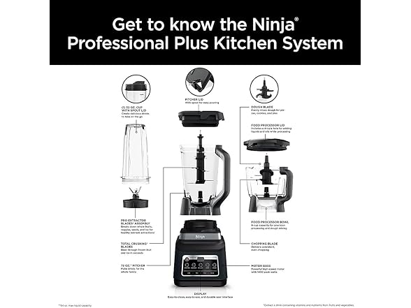 MORE FUNCTIONALITY: The Ninja Professional Plus Kitchen System with Auto-iQ features a new modern design and more functionality than Ninja's original Kitchen System. POWERFUL CRUSHING: Ninja Total Crushing Blades give you perfectly crushed ice for your smoothies and frozen drinks with 1400 peak watts of professional power.