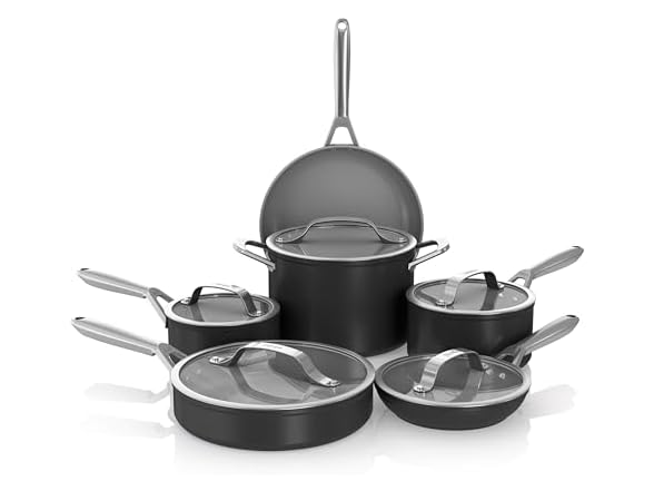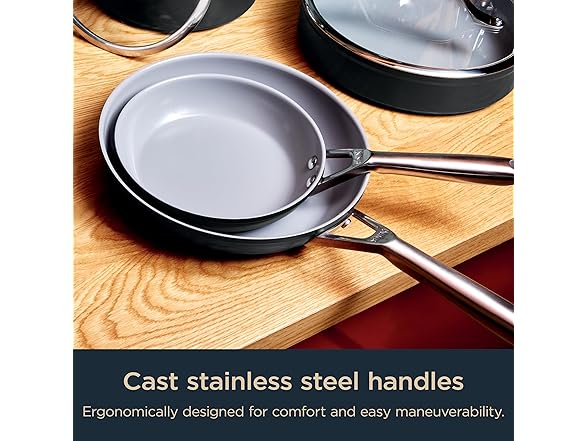 - BUILT FOR VERSATILITY: Pots and pans are broil-capable to 550°F and dishwasher safe.