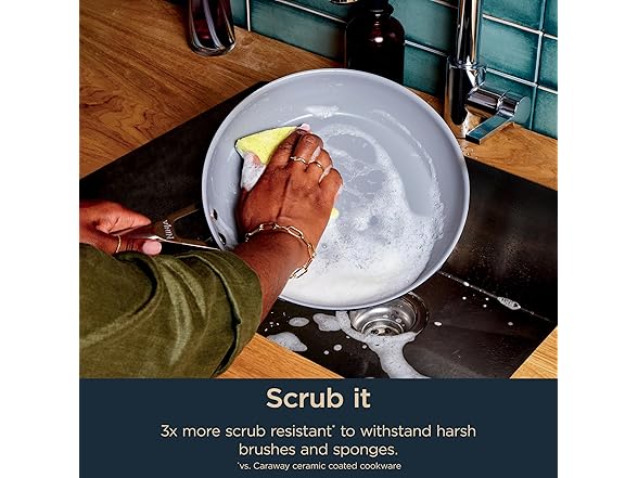 - LONG-LASTING NONSTICK PERFORMANCE: Exclusive Titanium-infused ceramic coating. 10-year nonstick guarantee. 3x more scrub resistant* to withstand harsh brushes and sponges *vs Caraway ceramic coated cookware.