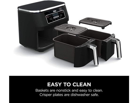 - DualZone Technology features Smart Finish feature for cooking 2 foods 2 ways that finish at the same time, and a Match Cook button to easily copy settings across zones for full 8-qt capacity