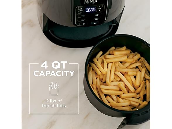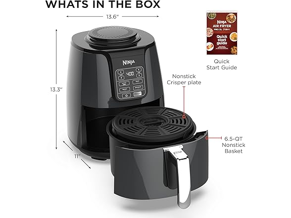 - WHAT'S INCLUDED: Ninja Air Fryer, 4 Quart Nonstick Basket, Crisper Plate, and 20 Recipe Booklet.