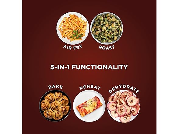 - 4-IN-1 VERSATILITY: Includes 4 versatile cooking programs: Air Fry, Roast, Reheat, and Dehydrate.