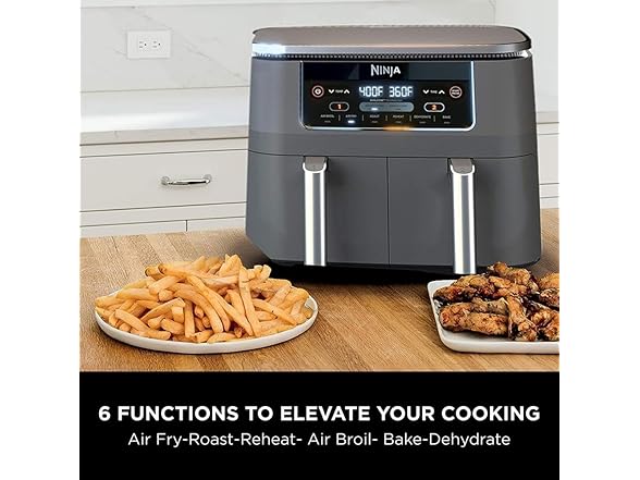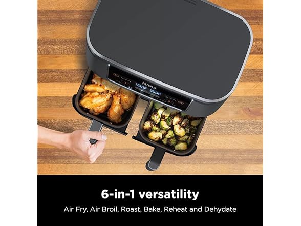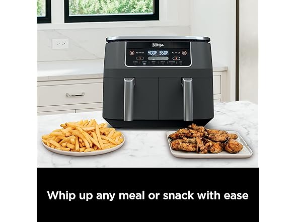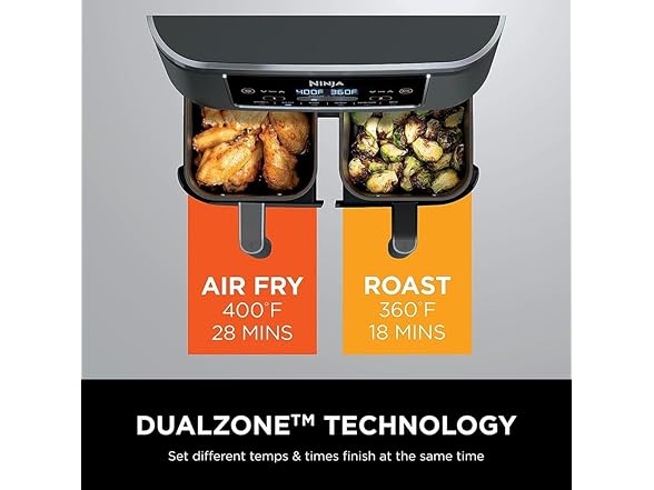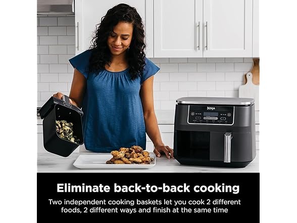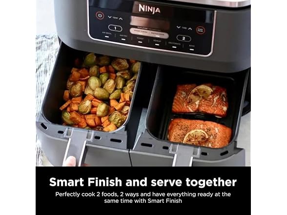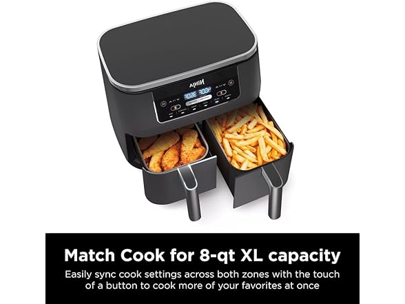 - SMART FINISH & MATCH COOK: DualZone Technology allows you to choose between the Smart Finish feature, which unlocks cooking 2 foods 2 ways that finish at the same time, and the and a Match Cook button to easily copy settings across zones for full 8-qt capacity.