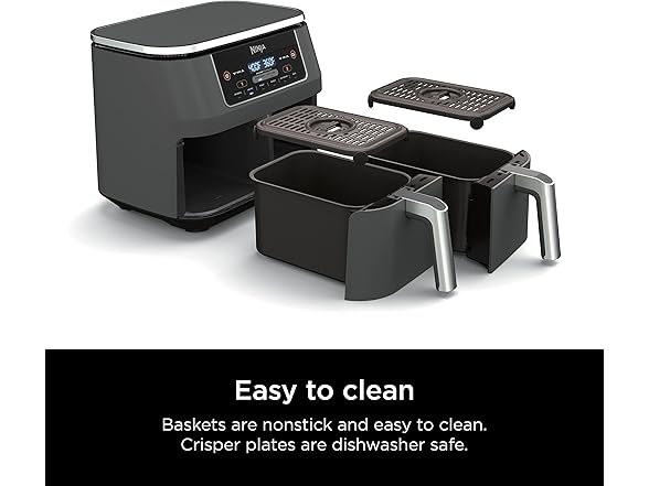 - EASY CLEANING: Easy-to-clean baskets and dishwasher-safe crisper plates.