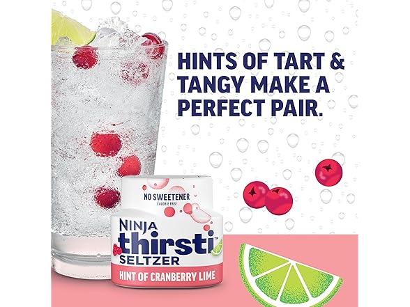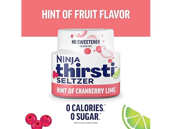 Ninja WCFCBLMAM Thirsti Flavored Water Drops, SELTZER Cranberry Lime, Crisp and Refreshing Sparkling Water, Zero Calories, Zero Sugar, Zero Sweeteners, Makes 20, 12oz drinks, 3 Pack