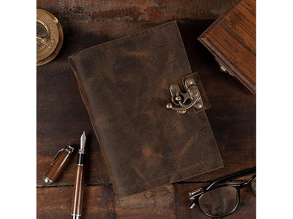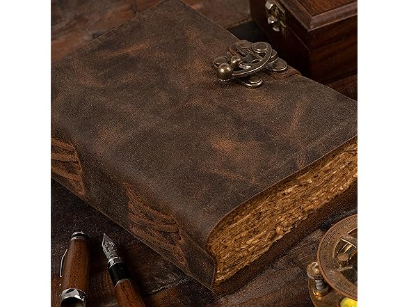 - VINTAGE LOCK AND STURDY BINDING - The vintage lock will keep all your valuable writing locked inside.Sturdy hand stitched binding to make sure that no paper comes out loose from your vintage notebook.