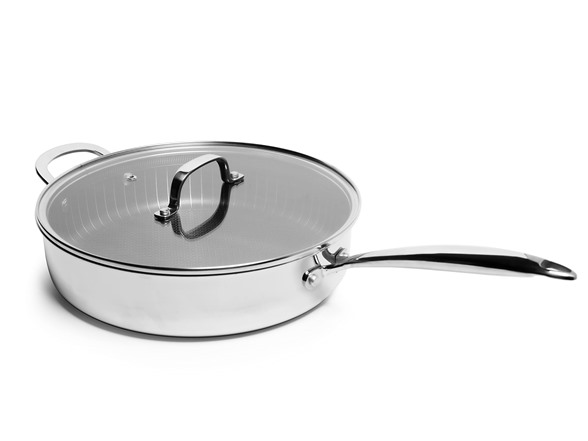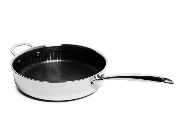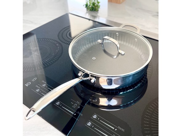 - EVEN HEATING: The frying pan is made up of 3 layers, the first layer is stainless steel, layer 2 is aluminum, and layer 3 is stainless steel. The tri-ply construction allows for heat to be quickly absorbed and evenly distributed across the whole pan, allowing you to cook food faster without having to compromise on quality.