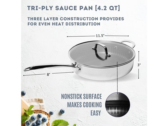 - (1) Lexi Home Nonstick 4.2-Quart Cooking Pan with Lid | Diamond, Tri-Ply Kitchen Cookware | Everyday Cooking Pot | Oven & Dishwasher Safe, Stay Cool Handle, Scratch Resistant, For All Stove Types