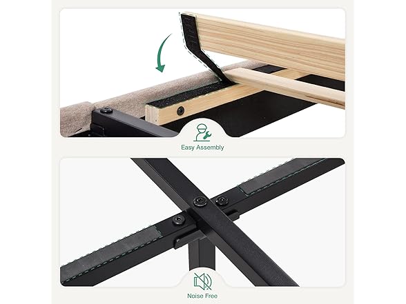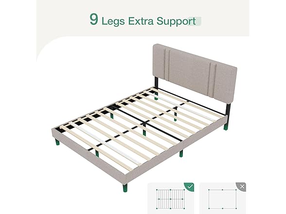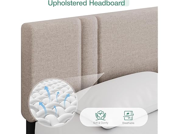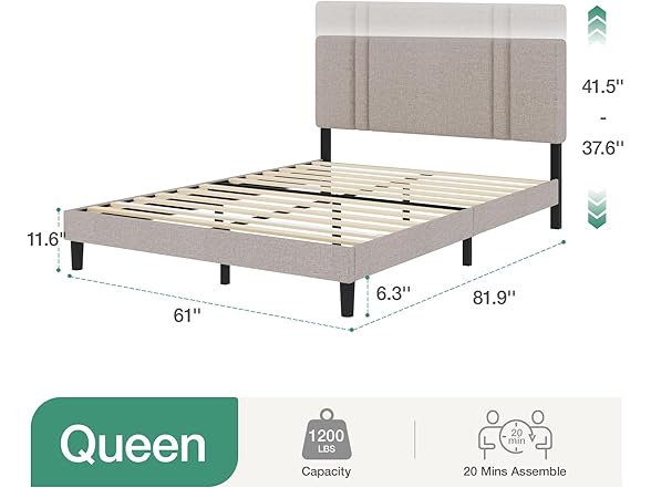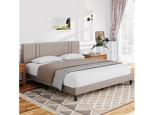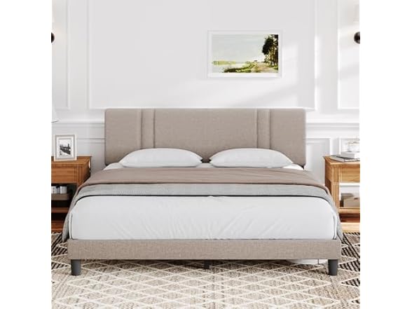 Novilla Queen Bed Frame with Headboard, Bed Frame Queen Size with Wood Slats Support,Linen Upholstered Adjustable Headboard, No Box Spring Needed, Heavy Duty Feet, Easy Assembly, Beige