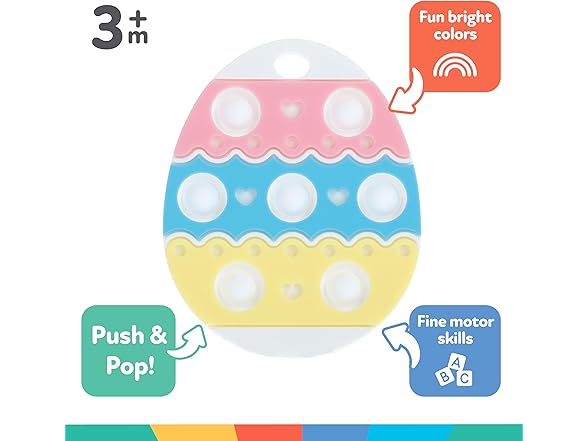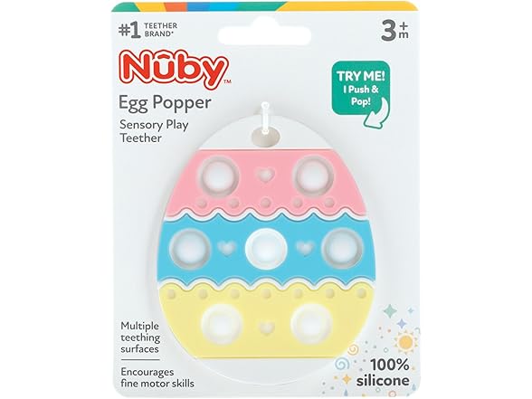 Nuby Easter Egg Popper Teether – Soft Silicone Teething Toy for Babies, 3+ Months, Sensory Pop Bubbles, Easy Grip Design